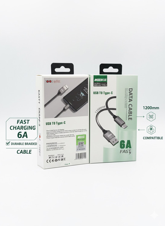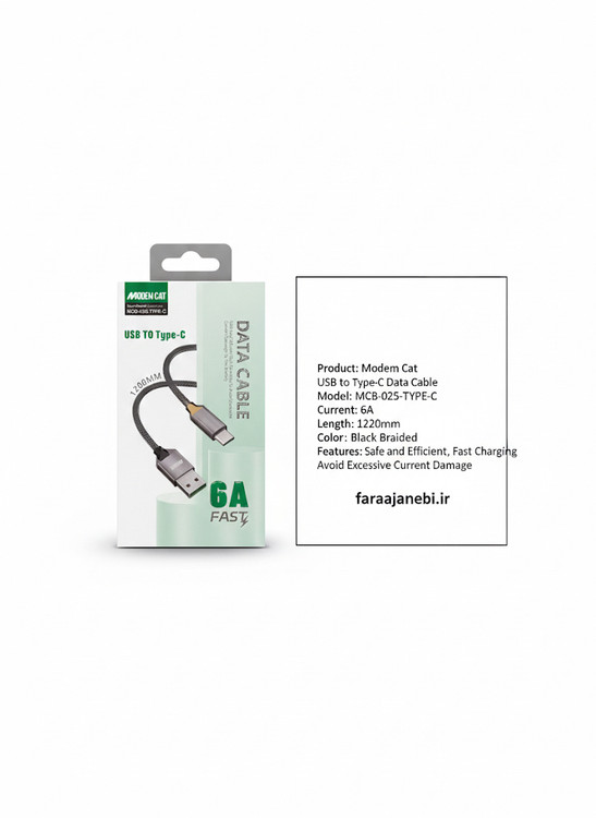 کابل شارژ یو اس بی به تایپ سی 6 آمپر برند مدم کت مدل MCB-025