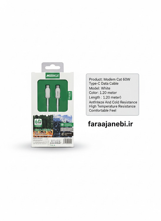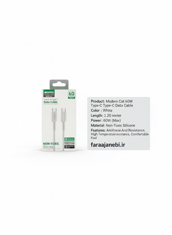 کابل تایپ سی به تایپ سی 60 وات مودم کت مدل mcb-008 طول 1.2 متر