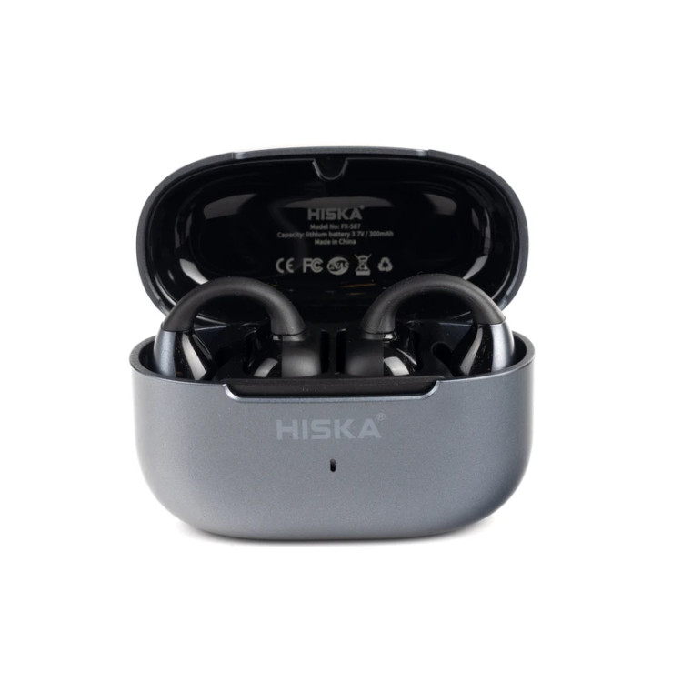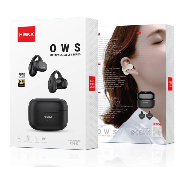 هندزفری بلوتوثی هیسکا مدل FX-567 یکی از تولیدات جذاب این شرکت است که طراحی منحصربهفردی دارد و به همین دلیل مورد توجه بسیاری از کاربران هندزفری قرار گرفته است؛ نسل جدید ایربادزهای بلوتوثی با نام OWS (open wearable stereo) شناخته میشوند، طراحی منحصر به فرد این نسل علاوه بر استفاده راحت تر، امکان شنیدن صدای محیط اطراف را نیز آسان می نماید، با توجه به طراحی جدید این محصول و استفاده از ظرفیت باتری بیشتر به کاربر امکان گوش دادن به موزیک و مکالمه طولانی مدت را بدون ایجاد خستگی می دهد. هدفون وایرلس FX-567 هیسکا از نوع نیمه در گوش بوده و بدنهای مستحکم دارد. در دو رنگ مشکی و کرم تولید شده؛ طراحی ارگونومیک آن مناسب استفاده طولانی مدت است و بعد از ساعتها استفاده احساس درد یا خستگی نخواهید کرد. به صورت یک گیره دور لاله گوش قلاب میشود و هنگام ورزش و تحرک زیاد هم نگران افتادن آن نخواهید بود. از کنترل لمسی برخوردار است و به راحتی میتوانید دستورات مورد نیاز مانند پاسخ به تماس یا قطع مکالمه و همچنین تغییر موسیقی و یا توقف و پخش آن را اجرا کنید. همچنین برای این هندزفری از فناوری HiFi استفاده کردهاند که به لطف آن صدایی با دقت بالا را به گوش میرساند و از باس قوی برخوردار است. هدفون وایرلس هیسکا FX-567 نیروی مورد نیاز خود را از طریق باتری به دست میآورد و کیس آن از باتری با ظرفیت 300 میلیآمپرساعت برخوردار است و 1.5 ساعت طول میکشد تا به صورت کامل شارژ شود؛ درگاه شارژ Type-C است. ایربادها هم تا 6 ساعت پخش موزیک را با حجم صدای 70% برایتان فراهم میکنند. هم چنین در حالت استندبای 80 روز شارژ دهی دارد. برای هندزفری بی سیم هیسکا از بلوتوث 5.3 استفاده کردهاند که یکی از بهروزترین نسخههای بلوتوث است؛ با این نسخه، سرعت بالا در اتصال و انتقال دادههای صوتی را تجربه خواهید کرد. بلوتوث 5.3 اتصالی پایدار (تا شعاع 10 متر) و بدون تأخیر را تضمین میکند. به همین دلیل درحین بازی کردن لگ و باگهای حاصل از هماهنگ نبودن صدا و تصویر آزارتان نخواهد داد.