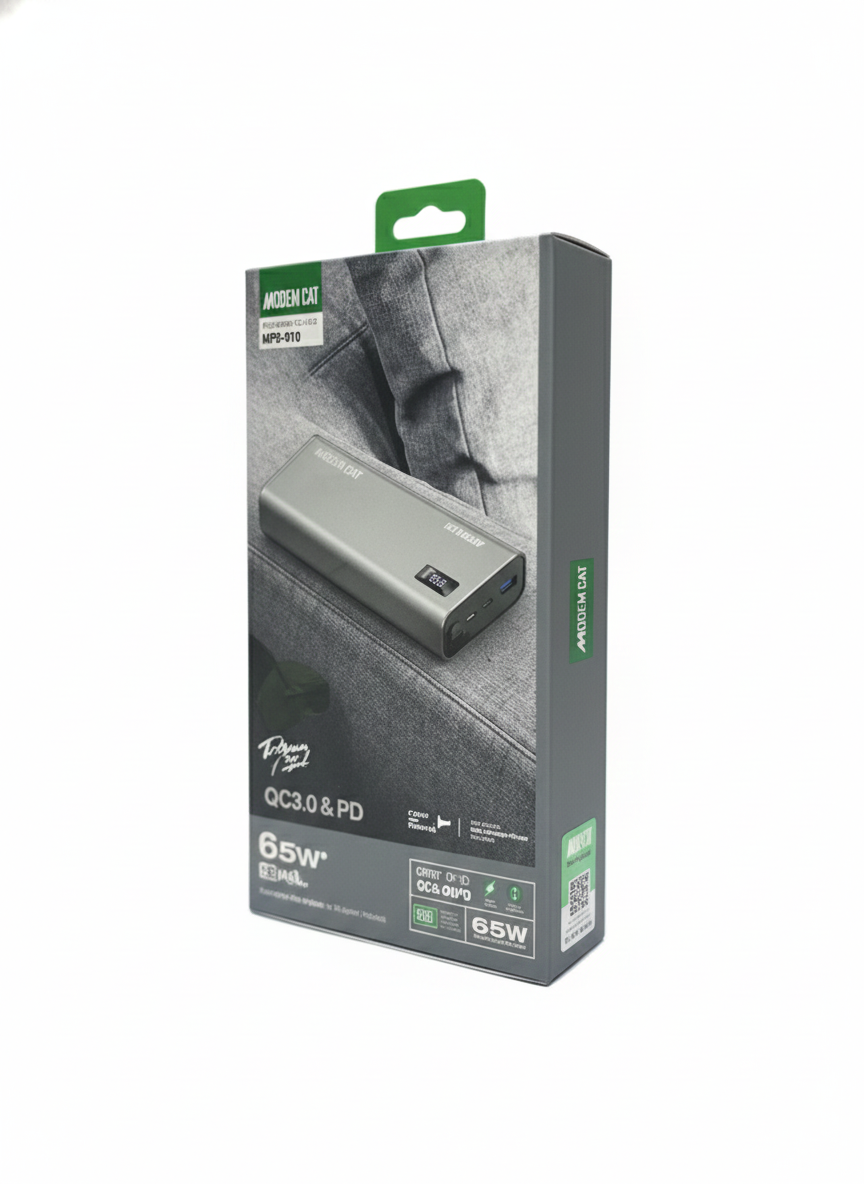برند مودم کت Modem Cat برند تازه تاسیس و جدیدی است که کارخانه آن در زمینه تولید کالای دیجیتال از قبیل انواع شارژرهای برقی، شارژرهای فندکی ماشینی و انواع کابل شارژ، انواع هندزفری و پاوربانک در شهر فوشان کشور چین واقع شده است. این کارخانه در آوریل سال 2019 شروع به کار کرده است و محصولات این شرکت بسیار با کیفیت می باشند که می تواند به زودی در بازار شناخته شود و از لحاظ کیفیت و دوام محصولات با سایر برندها رقابت کند. حداکثر توان شارژ: 65 وات،دارای فناوری سوپر فست شارژ،شارژ ایمن، مدیریت هوشمند شارژ توانایی موبایل، تبلت،پشتیبانی از فناوری فست شارژ PD,QC3.