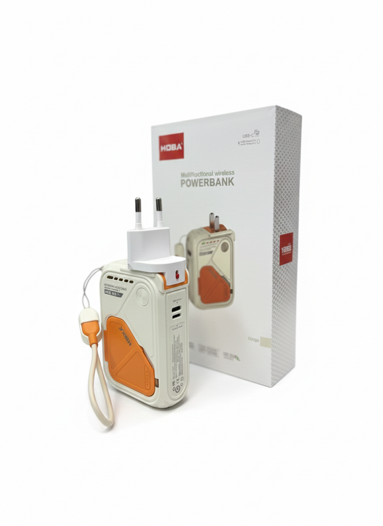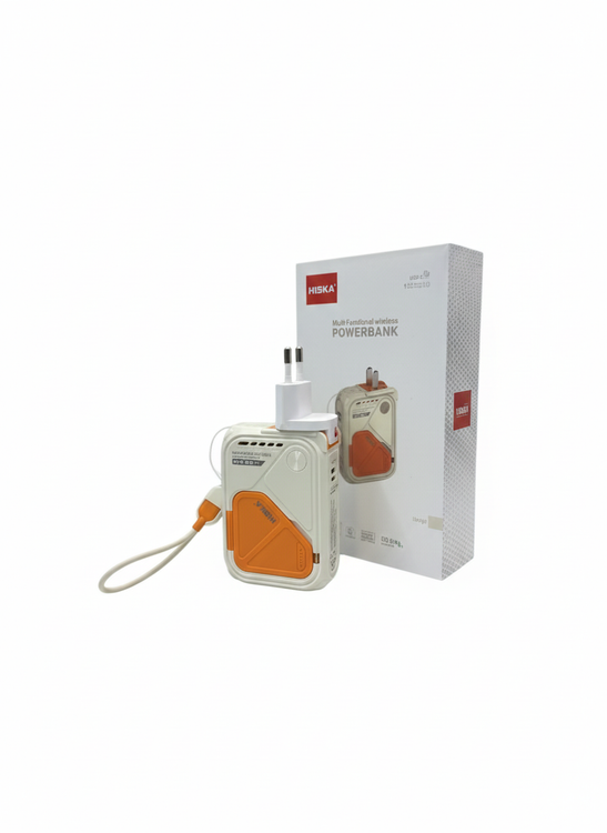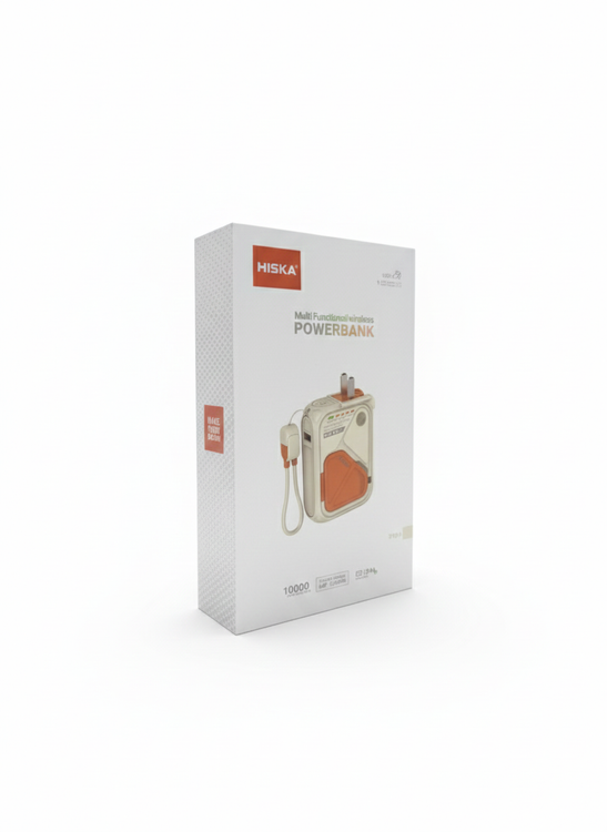 این محصول، پاوربانک بیسیم HISKA مدل HP-123PD است که به عنوان یک دستگاه چندمنظوره برای شارژ سریع و قابلحمل طراحی شده است. این پاوربانک با ظرفیت 10000 میلیآمپرساعت و ولتاژ 3.85 ولت، توانایی ارائه خروجیهای متنوع و قدرتمند برای انواع دستگاههای الکترونیکی را دارد. پاوربانک دارای چندین پورت خروجی است که شامل پورت USB با توان حداکثری 22.5 وات، پورت Type-C با توان حداکثری 20 وات، و خروجی Lightning با توان مشابه میشود. همچنین این دستگاه از قابلیت شارژ بیسیم با توانهای مختلف 5 وات، 7.5 وات، 10 وات و 15 وات پشتیبانی میکند، که آن را برای شارژ گوشیهای هوشمند مجهز به فناوری شارژ بیسیم بسیار مناسب میسازد. این پاوربانک از شارژ سریع ورودی نیز پشتیبانی میکند و از طریق پورتهای Lightning و Type-C میتواند با سرعت بالا شارژ شود. طراحی دستگاه به گونهای است که شاخههای برق داخلی آن جمعشونده بوده و در صورت نیاز برای اتصال مستقیم به پریز برق آماده میشوند، که این ویژگی به شما امکان استفاده مستقیم به عنوان یک شارژر دیواری را نیز میدهد. سطح دستگاه با روکشی به رنگ سفید و نارنجی طراحی شده که علاوه بر زیبایی، دوام و کاربری آسانی را ارائه میدهد. نشانگرهای LED تعبیهشده روی بدنه میزان شارژ باقیمانده باتری را نشان میدهند. این پاوربانک با پشتیبانی از فناوریهای مختلف نظیر Qualcomm Quick Charge 3.0 و Power Delivery، کارایی و انعطافپذیری بالایی را به کاربران ارائه میدهد.