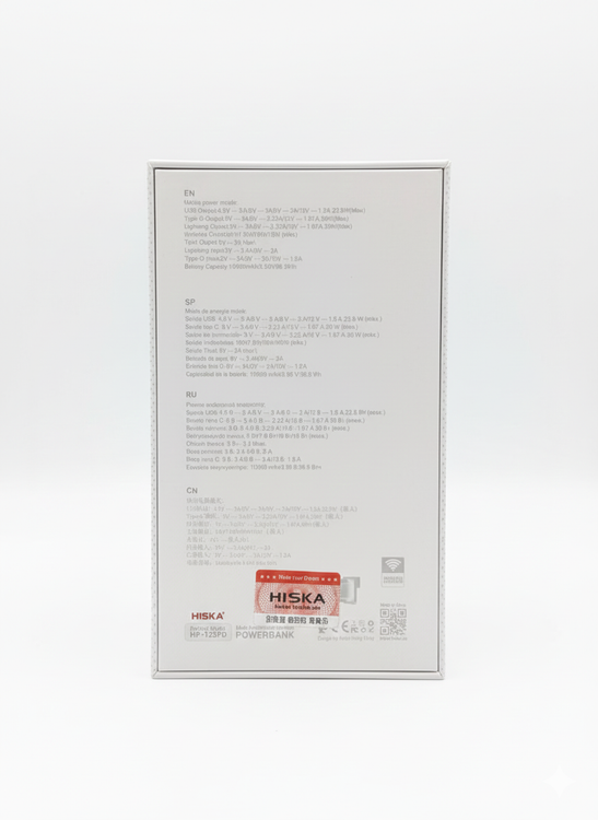 پاوربانک وایرلس هیسکا مدل HP-123PD ظرفیت 10000 میلی آمپر ساعت 22.5 واتی